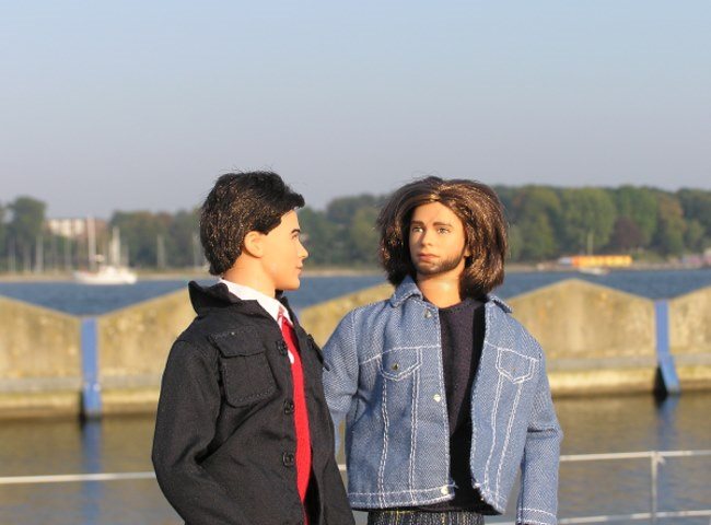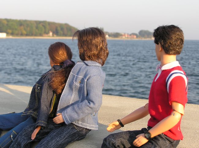 Jana: ,,Du mußt unbedingt mal wiederkommen und mit uns segeln. Dieses Jahr ist die Saison leider schon vorbei. Am Montag kommt das Boot aus dem Wasser.” Jamie: ,,Ich würde gerne einmal mitsegeln.”