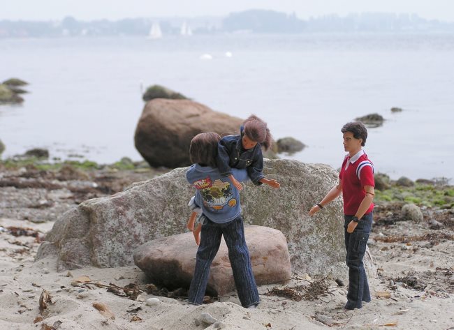 Jana: ,,Jungs, ihr müßt unbedingt auch reinkommen! Das Wasser ist noch gar nicht so kalt.”