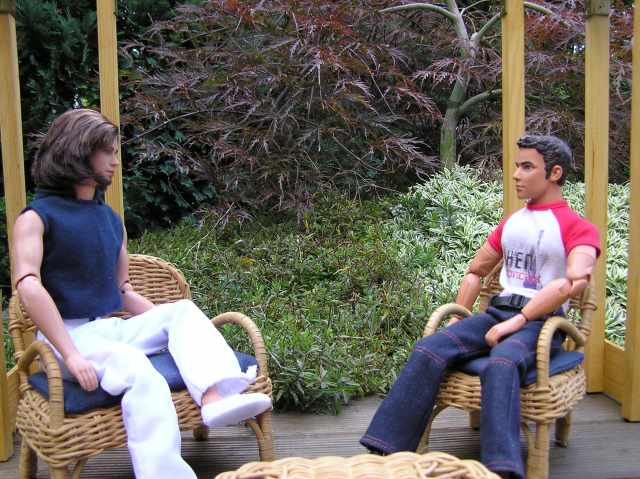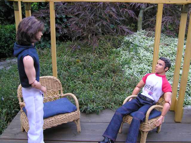 Tobias: ,,Wann könnten wir uns denn mal unterhalten?” Björn: ,,Also, dir scheint ja wirklich was auf der Seele zu brennen. Um 10 Uhr machen wir hier sowieso Schluß. Wenn du willst können wir uns kurz danach im Garten treffen. Ich hoffe für dich, dass wir dort ungestört sind.” Tobias: ,,Okay, ich warte um 10 Uhr auf der Terrasse.”