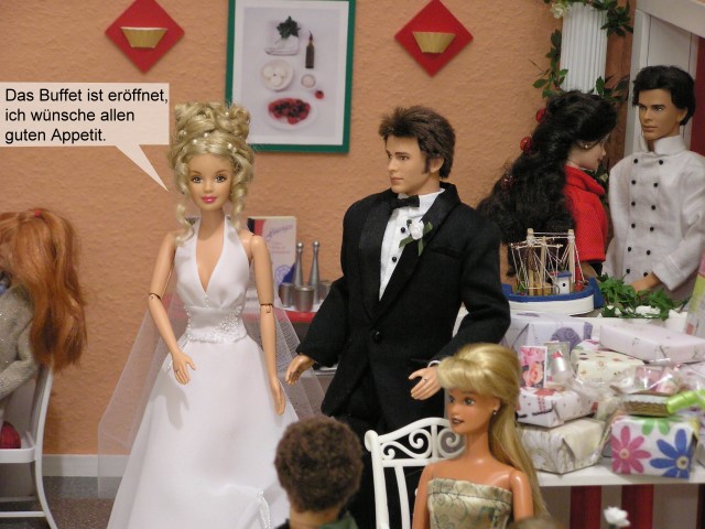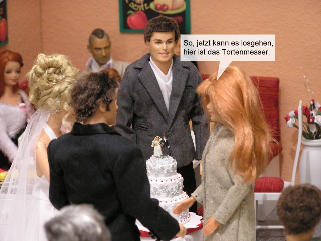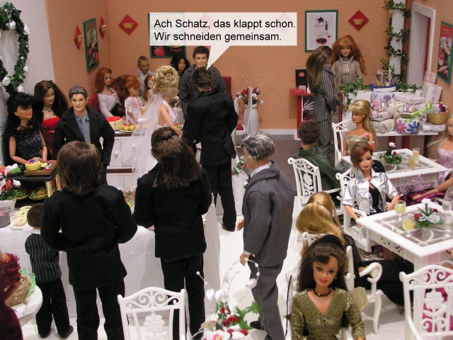 Währendessen bereiten Lisa und Aragorn sich schon einmal auf das Anschneiden der Hochzeitstorte vor.