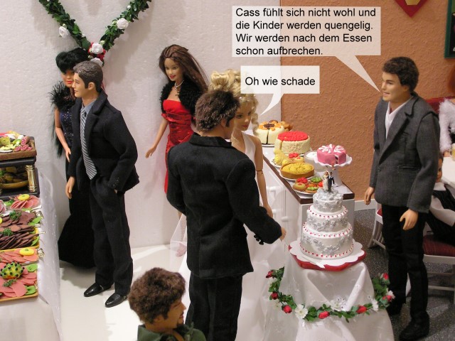 So eine Hochzeit wird für Kinder schnell langweilig. Außerdem fühlt sich Cass nicht ganz wohl. Die Sanderfelds und die Gäste aus der Schweiz wollen deshalb das Fest lieber schon nach dem Essen verlassen.