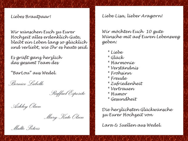 Auch auf den Hochzeitskarten findet man seinen Namen nicht. Die Hochzeitplanerin wird Ole und Margit Norden darauf ansprechen. Das Hochzeitspaar soll ungestört feiern.