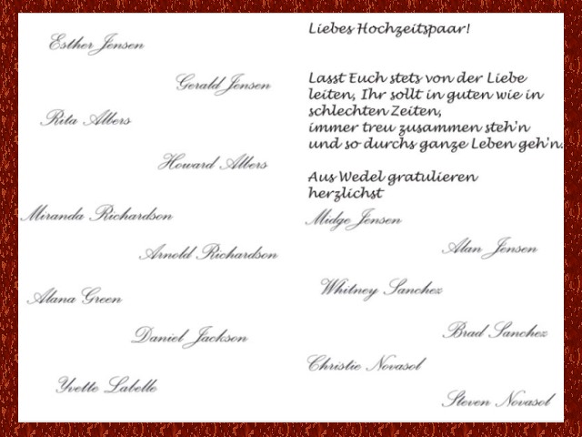 Zum Schluß noch ein paar Fotos vom Brautpaar. Sie öffnen sich mit einem Klick auf das Album: