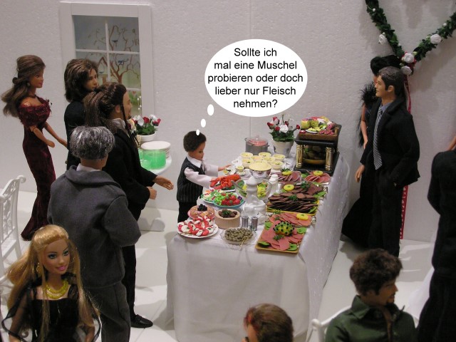 Aragorn hat sich nach dem Zwischenfall mit Ernst Krüger wieder beruhigt. Alle Gäste sind im Al Mare angekommen. Das Buffet kann also eröffnet werden.