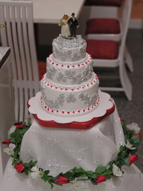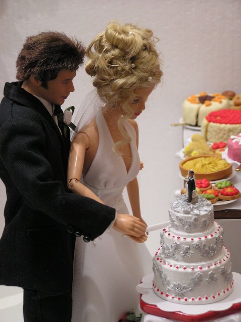 Nun wird die Hochzeitstorte angeschnitten.