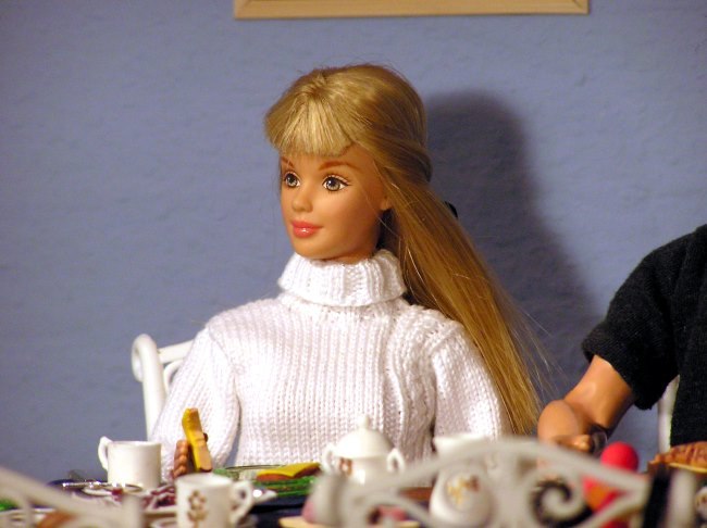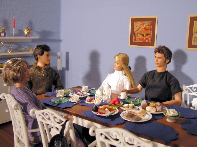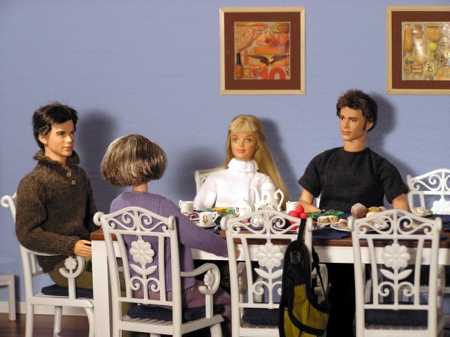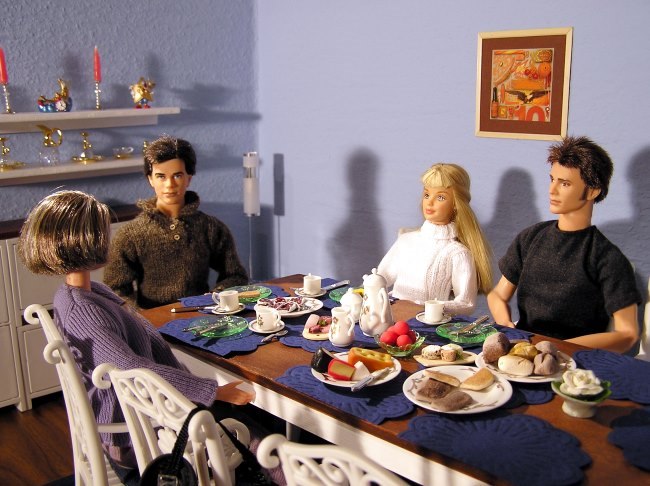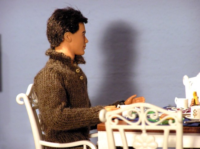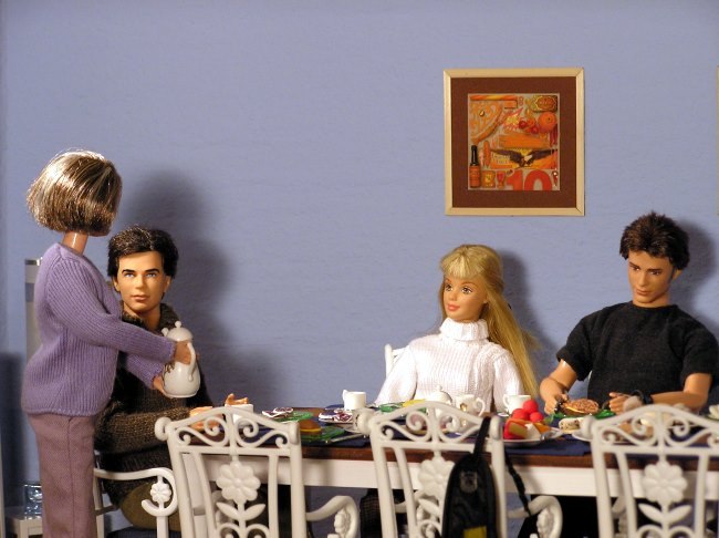 Am nächsten Morgen beim Frühstück.