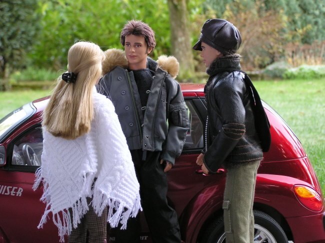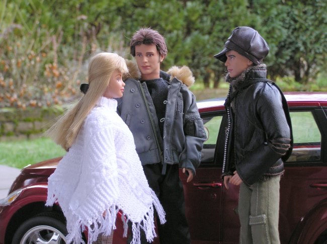 Aragorn: *Sie sieht toll aus.* Lisa: ,,Gefällt dir mein neuer Poncho? Ist von Jana.” Jamie: ,Mir gefällt nicht nur der Poncho!” Lisa: ,,Ach Jamie, du Charmeur! So, nun müssen wir aber los. Du verpasst noch das Flugzeug.”