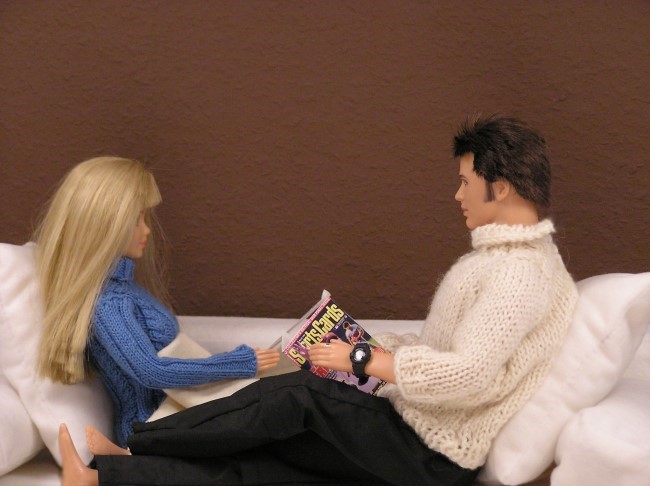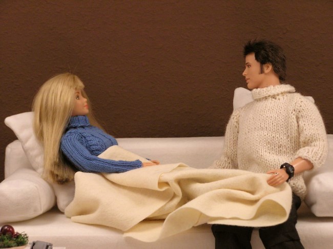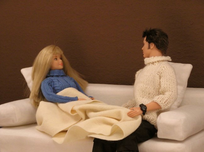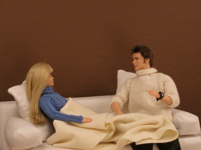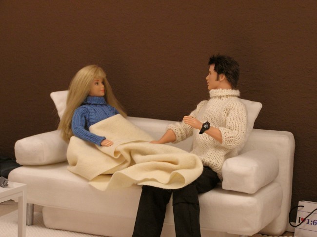 Sie hat gerade ein Telefongespräch beendet, als sie hört wie die Wohnungstür geschlossen wird. Kurz darauf kommt Aragorn ins Zimmer und setzt sich zu ihr.