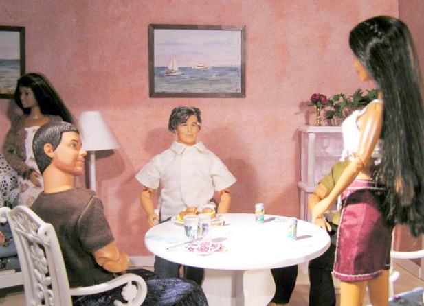 Als Tobias erkennt, welcher Besuch jetzt eingetroffen ist, würde er am liebsten verschwinden. Aber es gibt keinen Fluchtweg. Nele und Isabelle kommen direkt auf ihn zu. Da muß er jetzt durch.